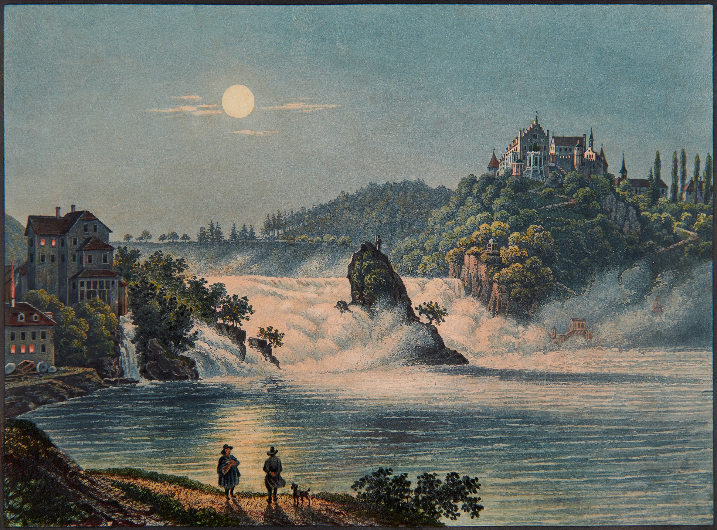 Der „Rheinfall bei Schaffhausen bei Wassermangel“ von Emanuel Labhardt (1858)