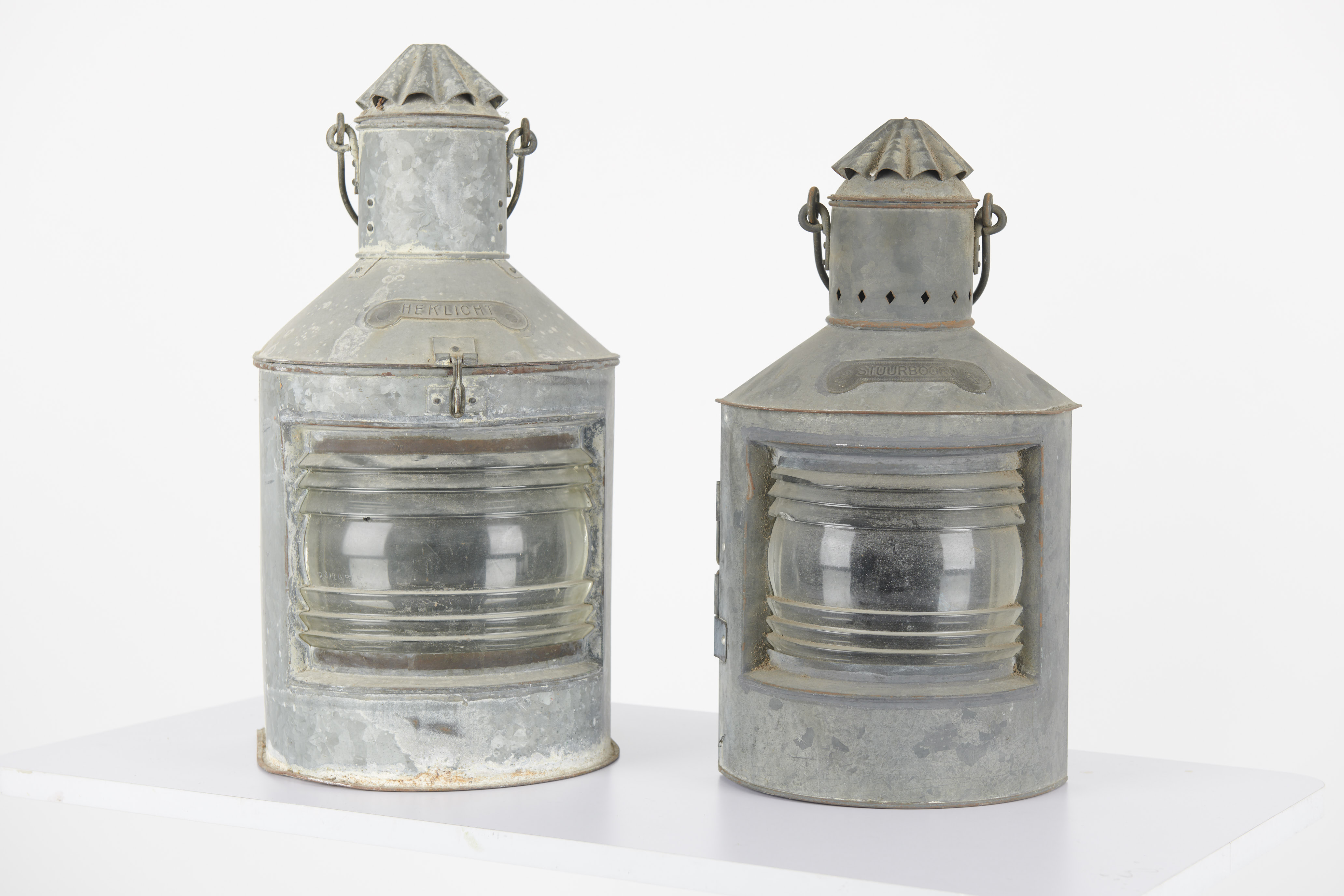 Historische Positionsleuchten der Bodenseeschifffahrt: Seit 1867 mussten alle Schiffe der internationalen Bodenseeflotte rote, grüne, weiße und blaue Positionslichter für Steuerbord, Backbord, Bug und Heck tragen, um Unfälle bei nebliger Wetterlage zu verhindern.