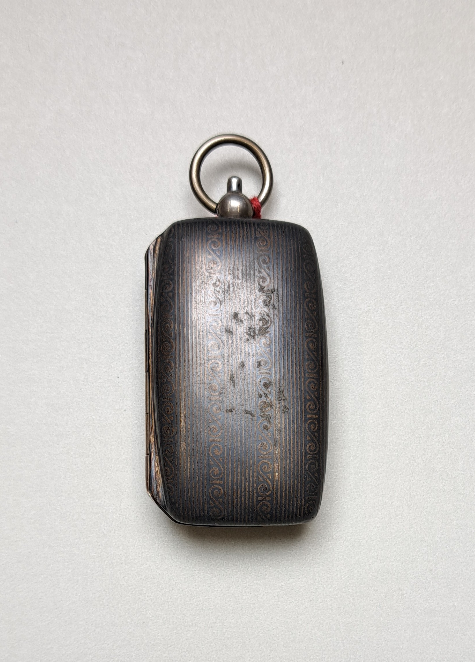 um 1900. Silber, oval mit eingraviertem Blättermotiv