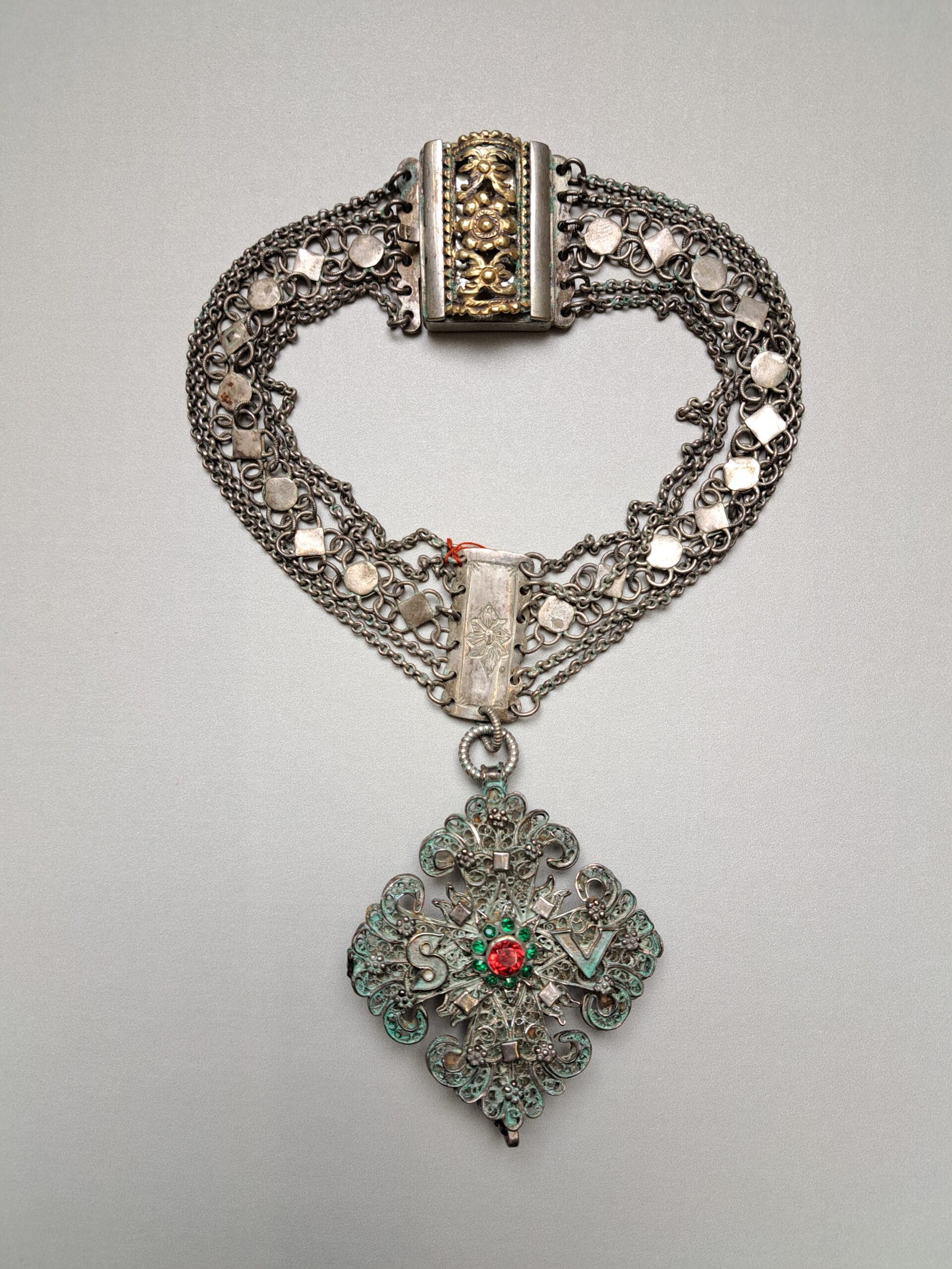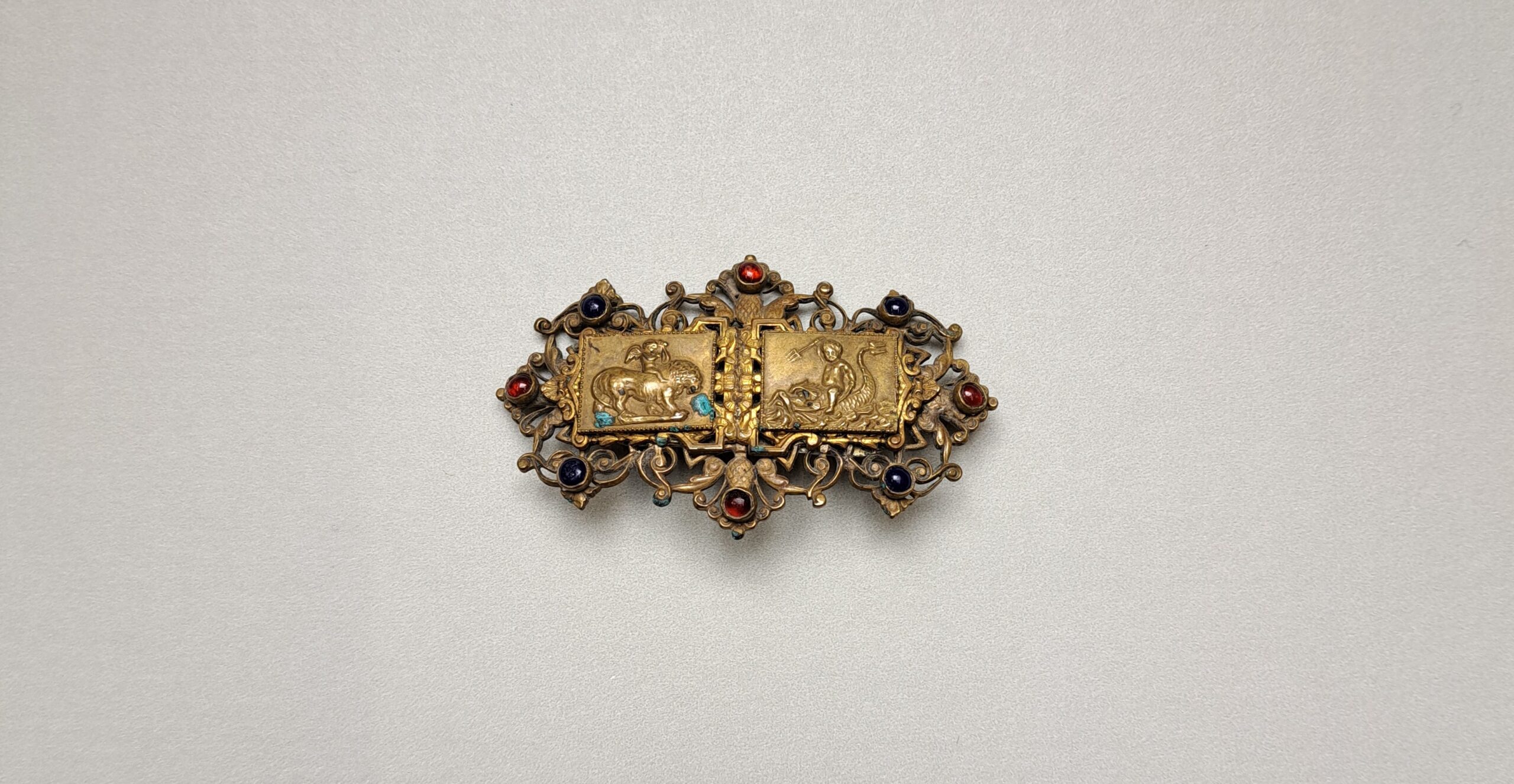 2. Hälfte 19. Jh., Kupfer vergoldet (?), Glassteine