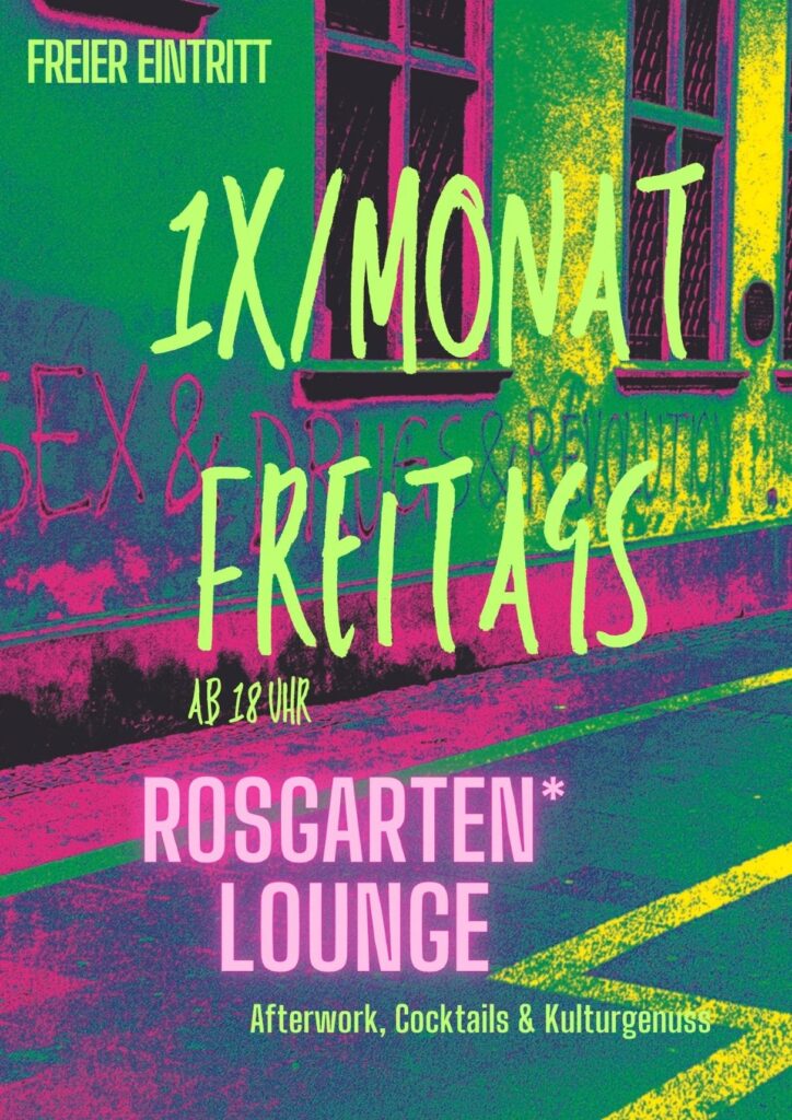 Die Rosgarten*Lounge findet einmal im Monat als offenes Format immer an einem Freitagabend im Rosgartenmuseum statt und ist immer einem Thema gewidmet. Sie verbindet AfterWork und Kulturgenuss. Entspannt Leute treffen, gute Gespräche führen, die Abendöffnung des Rosgartenmuseums genießen und an den Kulturimpulsen zum Thema teilnehmen.